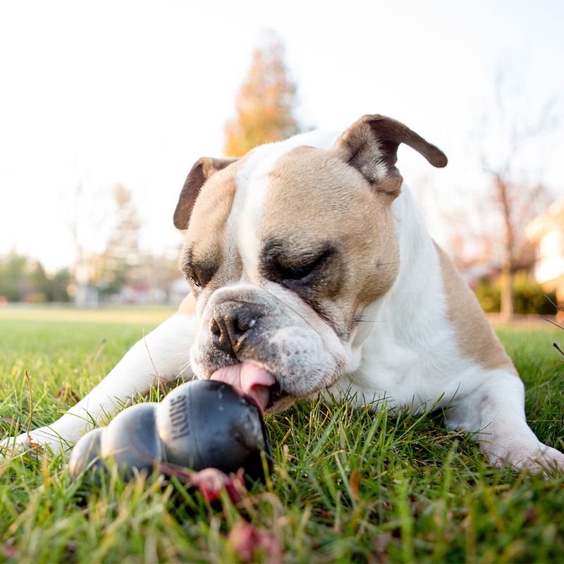 Another advantage of the KONG Extreme is that it can be filled with treats, such as bones or crackers, allowing your dog to "hunt" for its reward. Snacks can be easily inserted into the KONG Extreme using the hole at the base. Unlike other chew toys, the KONG Extreme can easily withstand playful attacks from paws and teeth. The rubber material is particularly robust and will not break into pieces within minutes.
