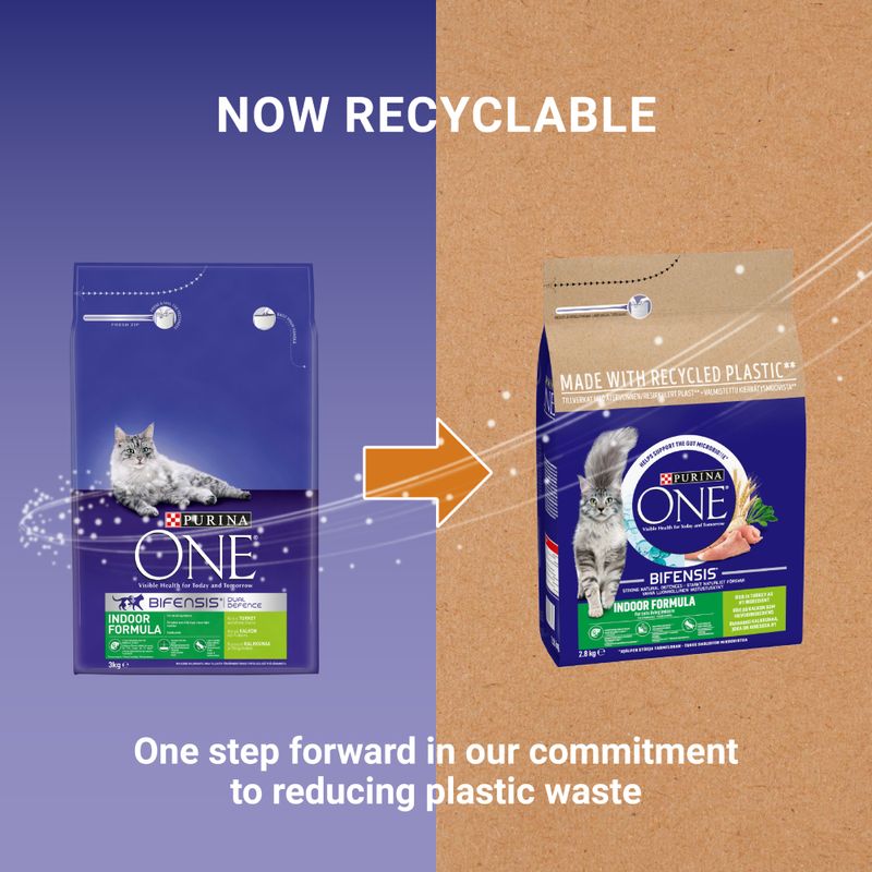 PURINA ONE Indoor Formula – Turkey & Whole Grains is specifically formulated for indoor cats which tend to groom themselves a lot and are less active than their outdoor counterparts. It provides the right balance of nutrients for their lifestyle and the innovative Bifensis Dual Defense formula supports your cat’s natural defenses, helping to keep your cat healthy both from inside and out.