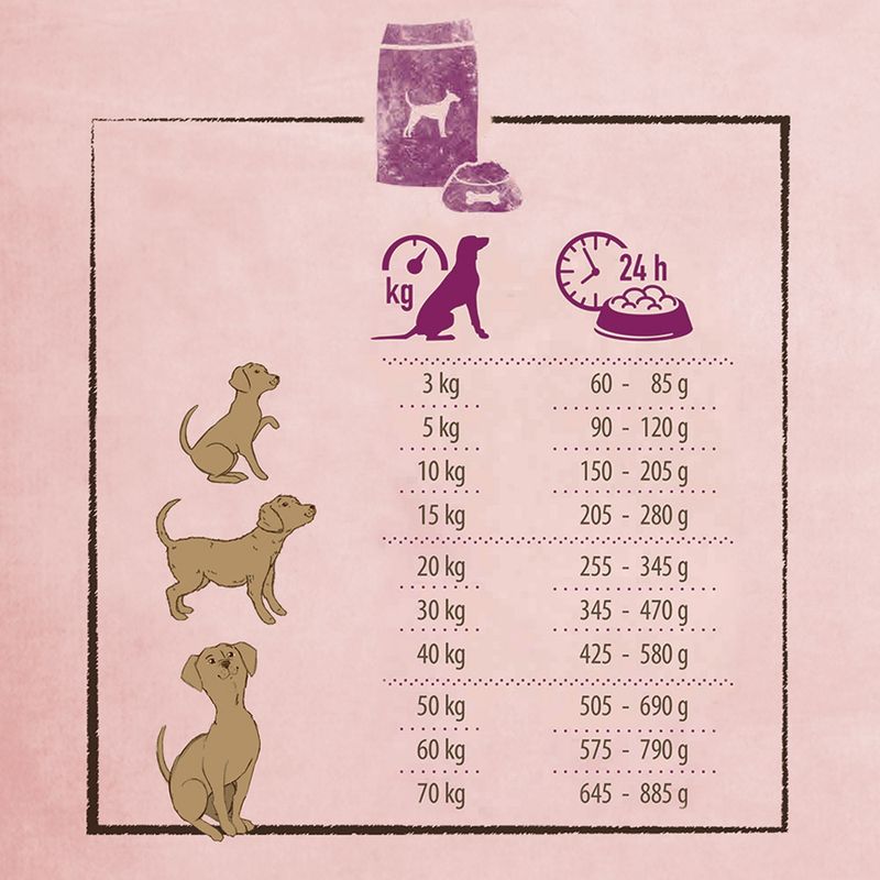 These guidelines are only recommendations. Your dog's actual food requirements can vary, depending on breed, level of activity and age.