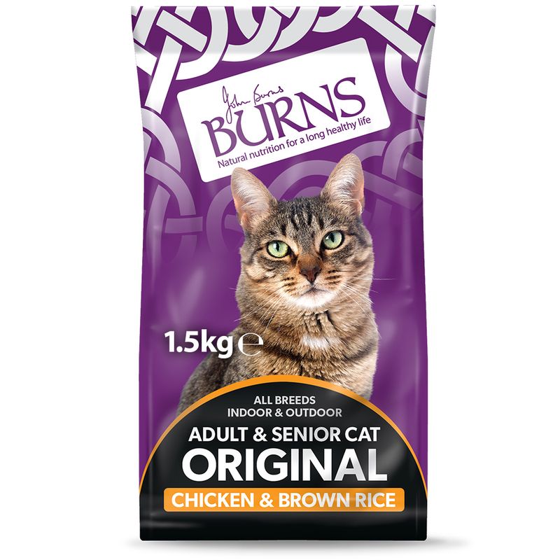 This Burns Adult & Senior Cat Original Chicken & Brown Rice is also enriched with a range of beneficial ingredients, including B‑vitamins and the 11 essential amino acids your cat needs for good health, including taurine for healthy heart function and vision. The kibble is designed to support healthy bones and muscles, as well as a functioning immune system, whilst controlled levels of protein and minerals can support kidney and urinary tract health.