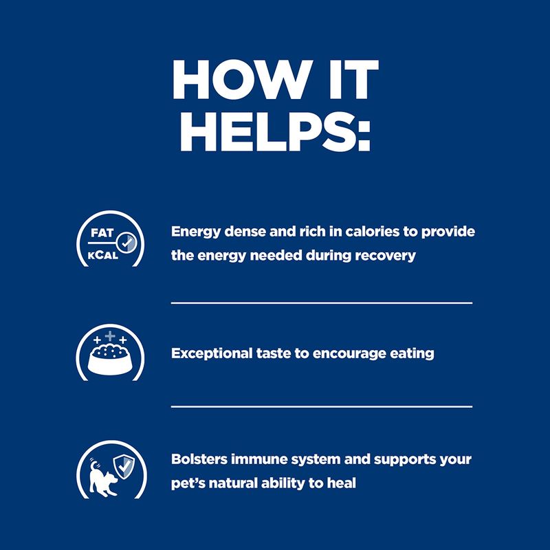 Hill's Prescription Diet a/d Canine Restorative Care with Chicken has been specially developed for adult cats or dogs that have undergone surgery or are suffering from a loss of appetite. This premium wet food is ideal for providing the special nutrition needed during recovery.