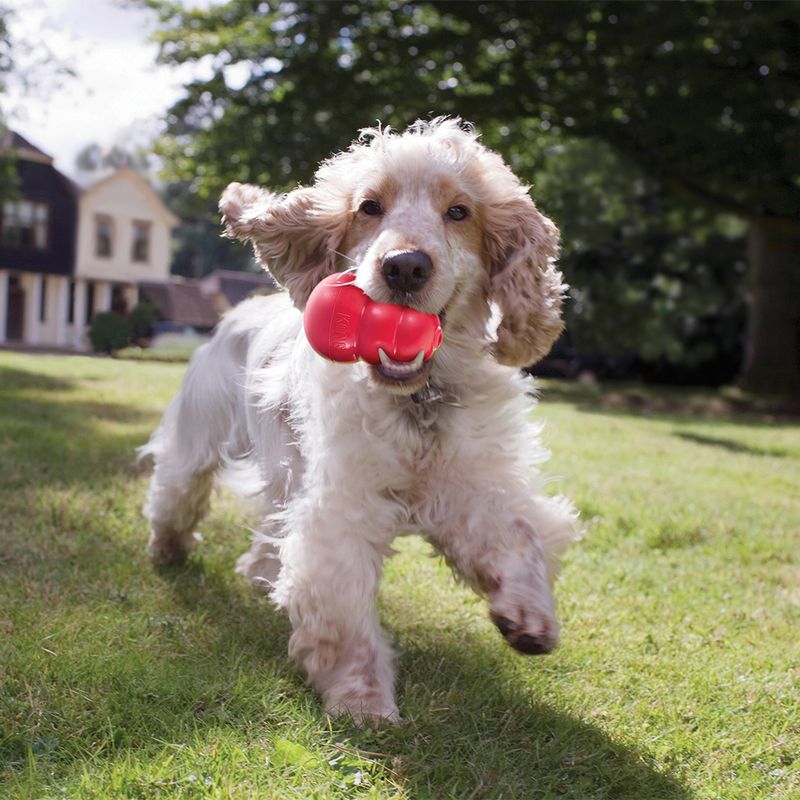 This toy has been specially designed with a dog’s natural instinct to chase and chew in mind. The KONG Classic is made of natural red rubber that encourages your dog to give it a really good gnaw. One particular characteristic of this toy is that it bounces in all directions when it hits the floor, making it perfect for chasing around after and keeping your pooch entertained for hours on end.