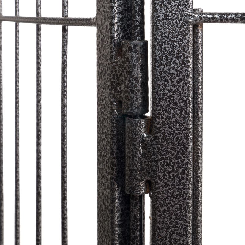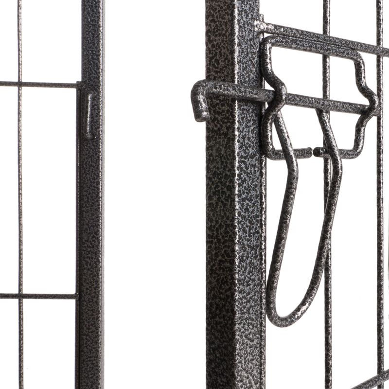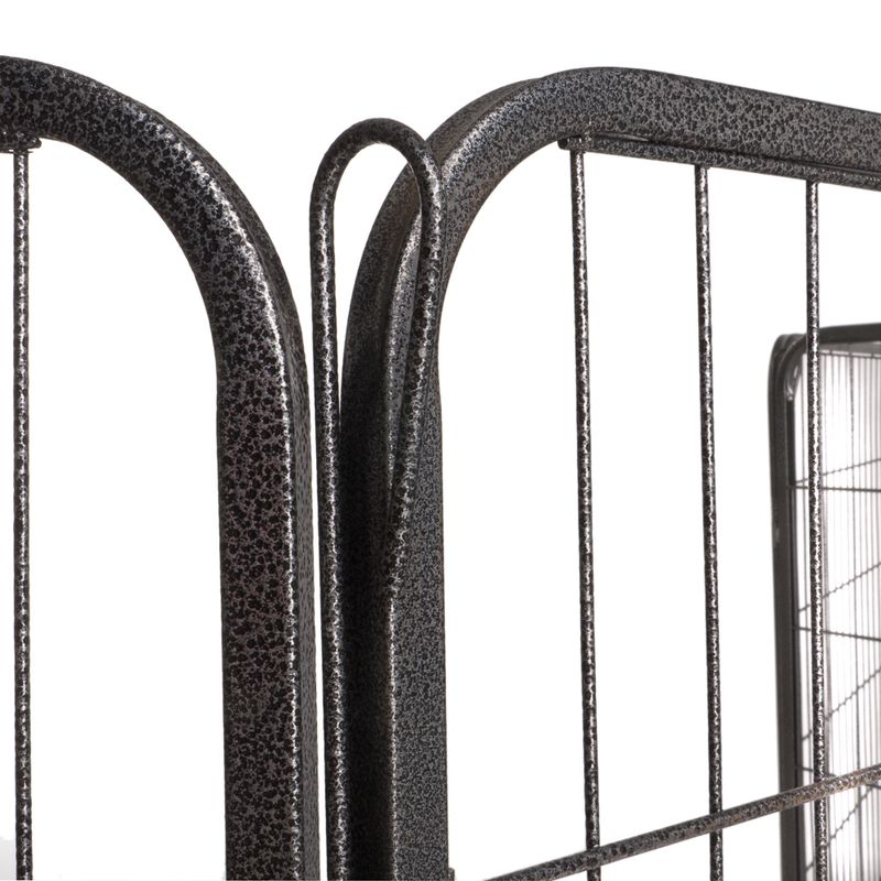 This run sets up quickly: the 8 metal sides are held together with connection pins, letting you add or remove individual elements to adjust the enclosure’s dimensions. On soft surfaces, the pins can also anchor the pen to the ground for added stability.