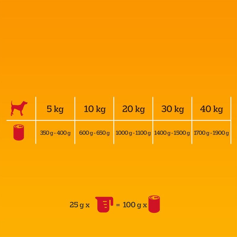 Adapt actual feeding amounts depending on your dog’s activity levels, breed and age. Change your dog gradually onto this food. Fresh drinking water should always be made available. Serve at room temperature. Once opened, keep refrigerated and use within 2 days.