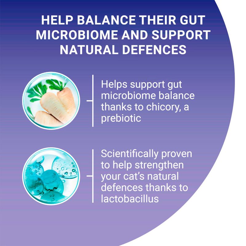 - Reduces hairball formation: A special fibre mix helps transport swallowed hair through the digestive system