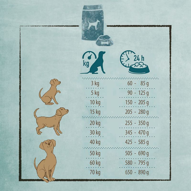These guidelines are only recommendations. Your dog's actual food requirements can vary, depending on breed, level of activity and age.