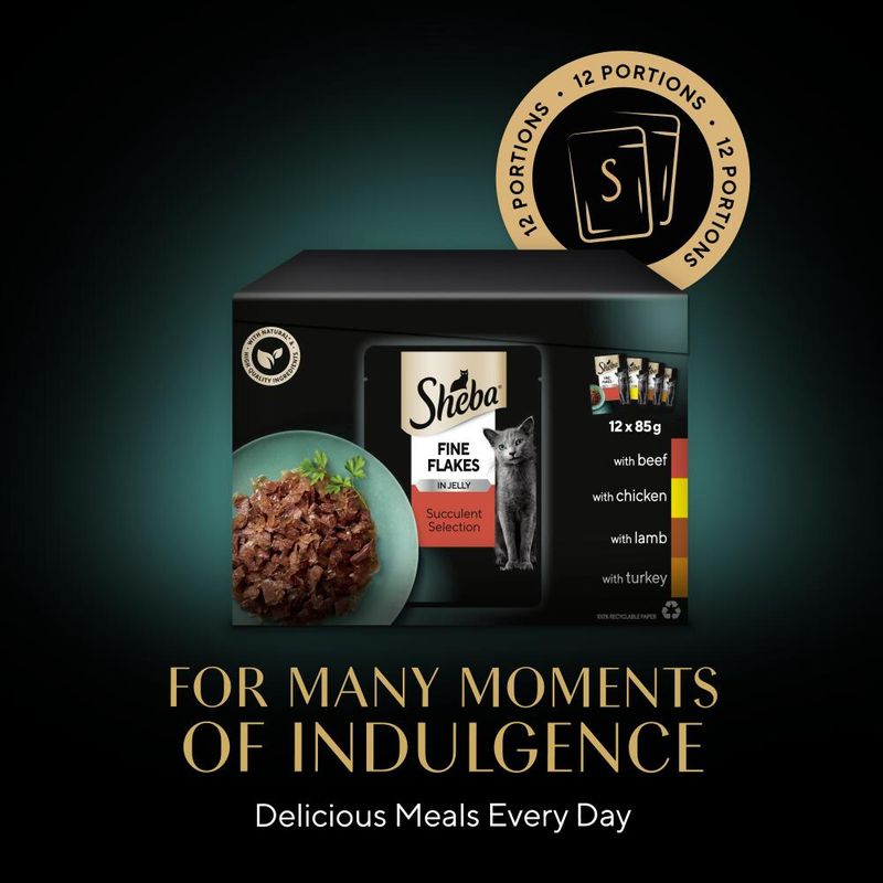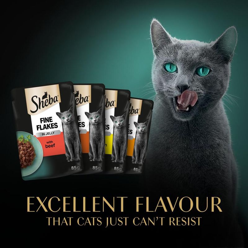 Is your cat particularly fussy when it comes to choosing its ideal meal? Then look no further than the **Sheba Pouches 12 x 85g** Fine Flakes or Sauce Collection. This range of irresistible flavours will delight even the pickiest eaters, making every feeding a moment of pure joy for your feline friend.Sheba Pouches offers a variety of delicious recipes that cater to every palate. Each balanced, flavoursome meal is crafted **without artificial flavours or preservatives**, ensuring it’s ideal for adult cats who deserve only the best. The practical pouches keep food fresh and make portioning a breeze—perfect for busy pet parents who want convenience without compromising quality.Keep your cat on its toes and bring balanced variety to its diet with these mouth‑watering wet food pouches. A different flavour every day keeps mealtime exciting!