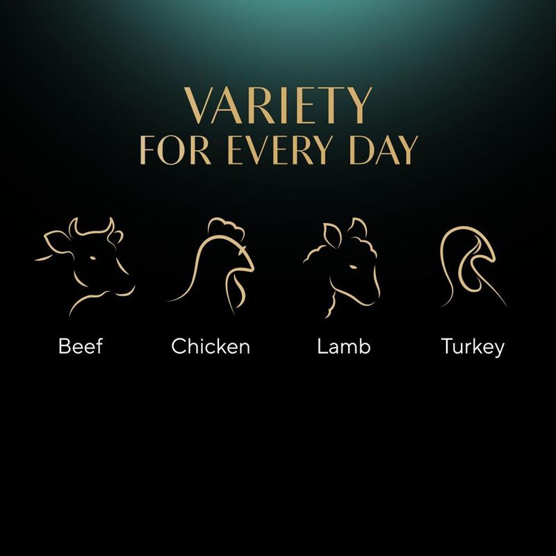 Meat and animal by-products* (incl. 4% turkey in chunks**), minerals, vegetable protein extracts, various sugars.