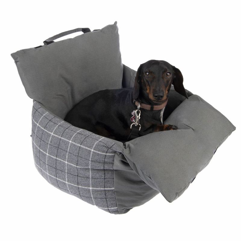 The seat offers a very high level of comfort thanks to a soft cushion and padded edges. An integrated short leash prevents your dog from jumping out unintentionally. The bed reliably protects the car upholstery from hair and dirt. However, it can not only serve as a cosy place to rest in the vehicle, but also at home. In addition, you can use the Sleep & Travel portable car seat as a carrycot for short journeys. Here, the attached carrying straps prove to be practical. Bonus for those who care about the environment: The main fabric used was made from recycled plastic bottles.