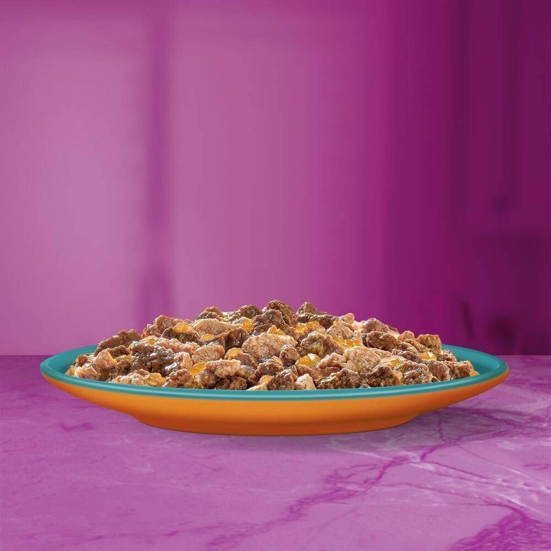 Whiskas 1+ Duo Surf & Turf in Jelly adult cat food pouches in jelly offers a complete and balanced meal for cats over 1 year. Each recipe combines two flavours, vital nutrients, vitamins and minerals. The mouthwatering meat and fish chunks covered in delicious jelly create one glorious, irresistible meal.